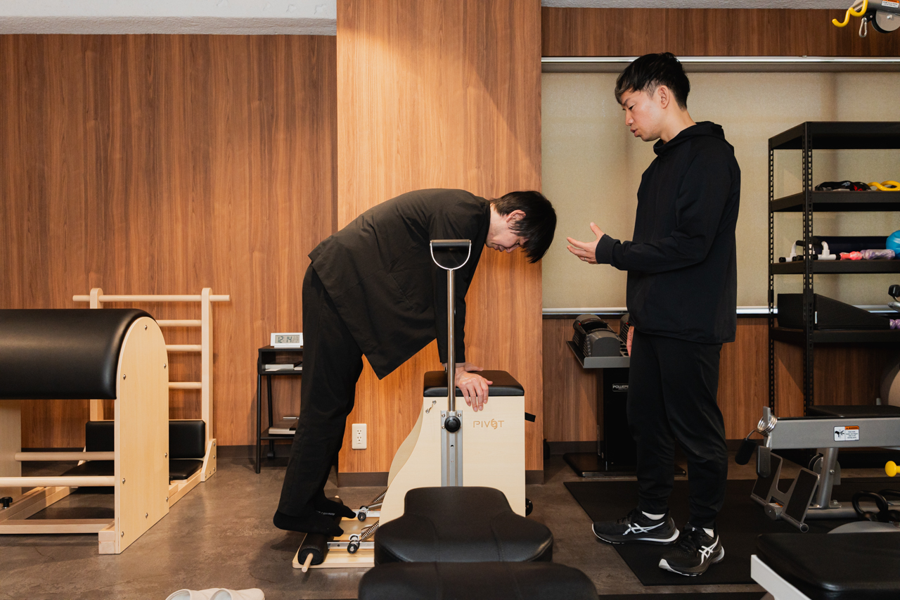 新⽥⾒様:最近、姿勢改善にも効果的なピラティスマシンを2台導⼊しました。